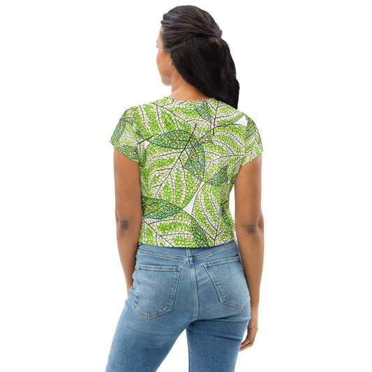 See through the leaves All-Over Print Crop Tee