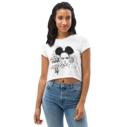 Happy Mind Happy Life Print Crop Tee