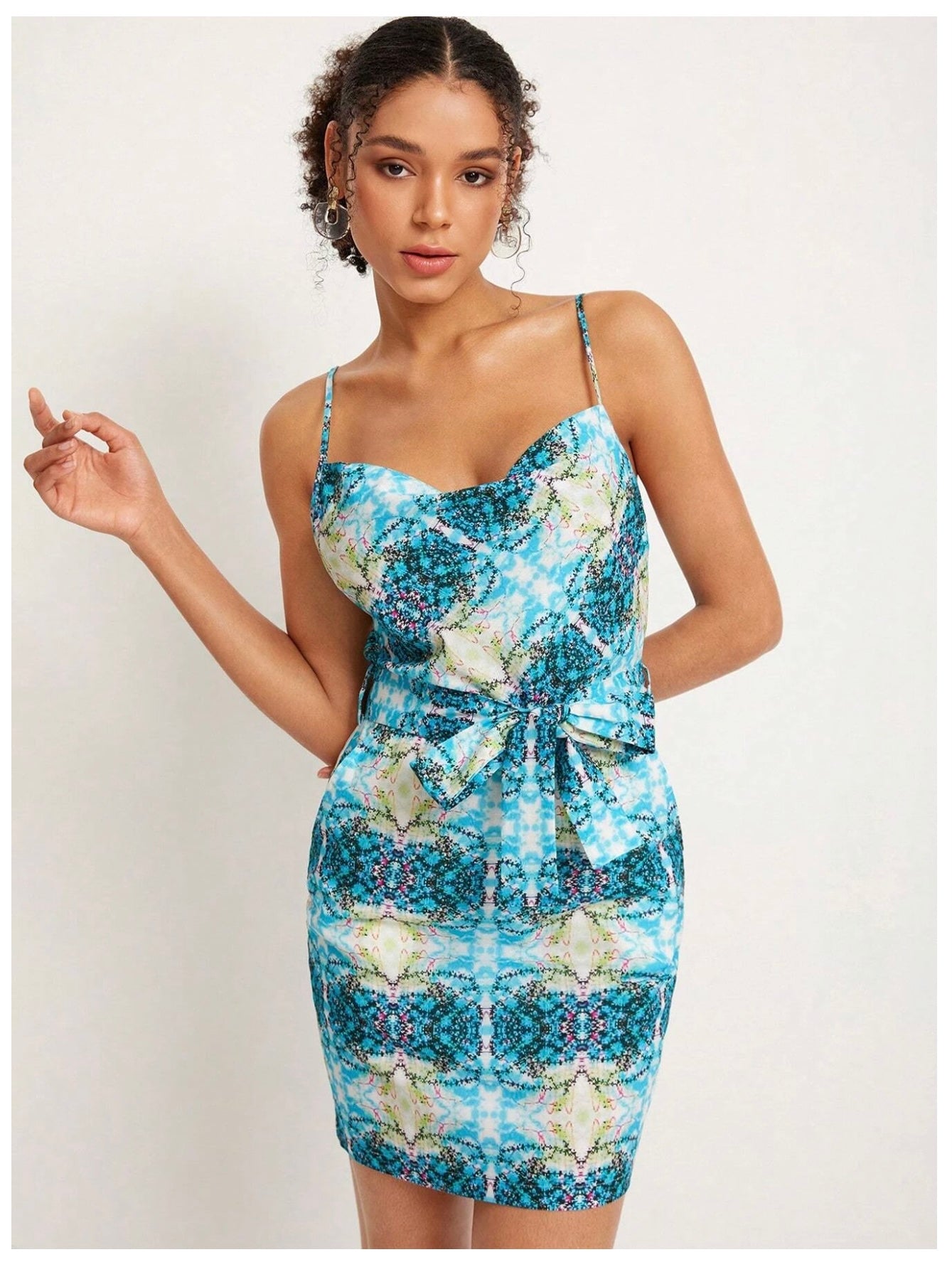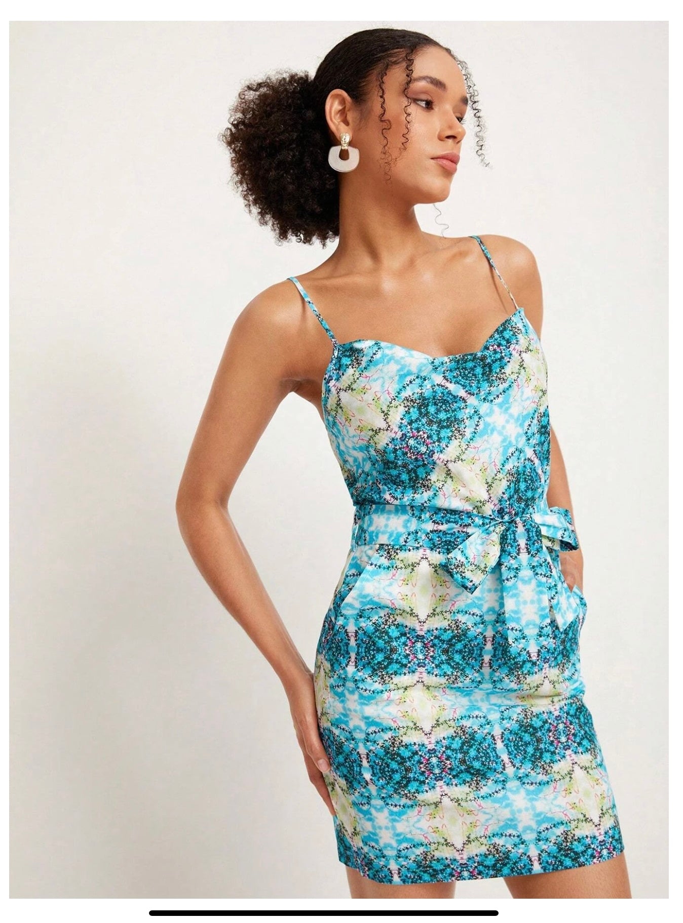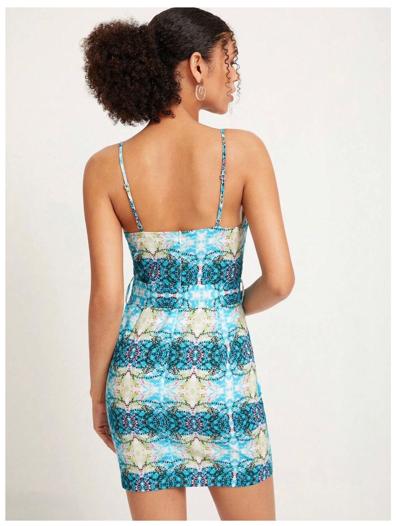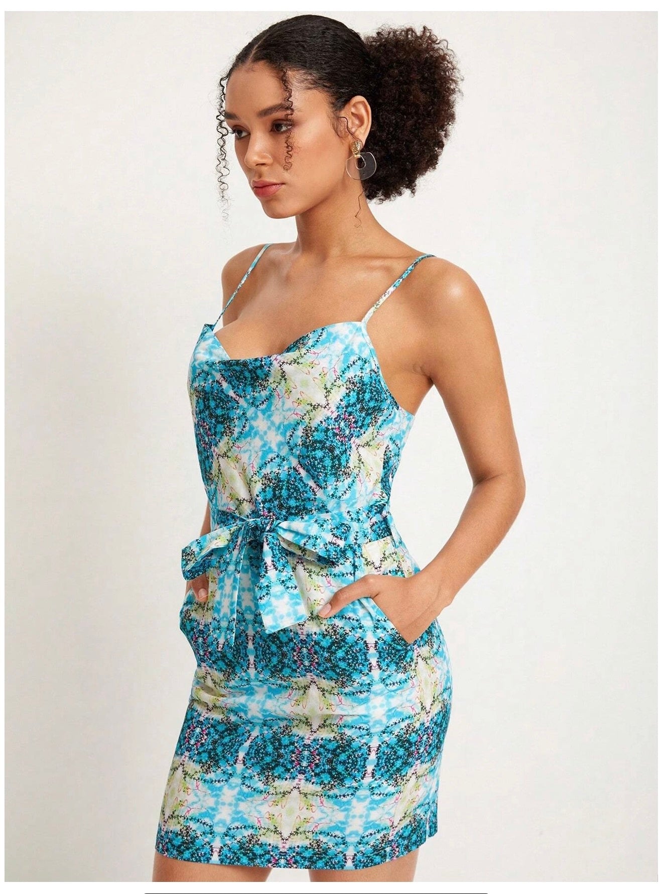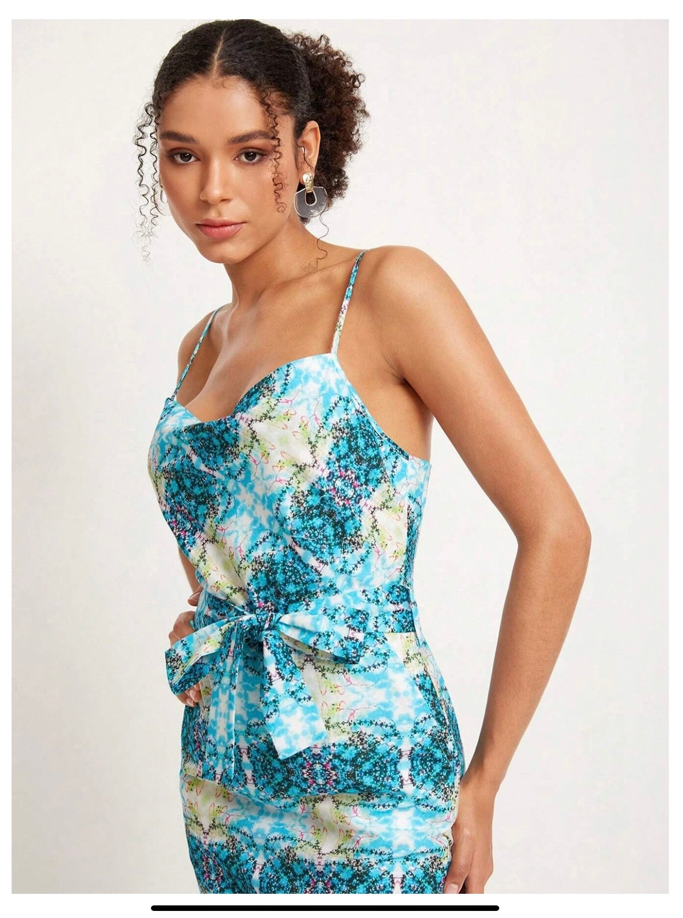 SHEIN & ItzaBrand Allover Print Belted Cami Dress