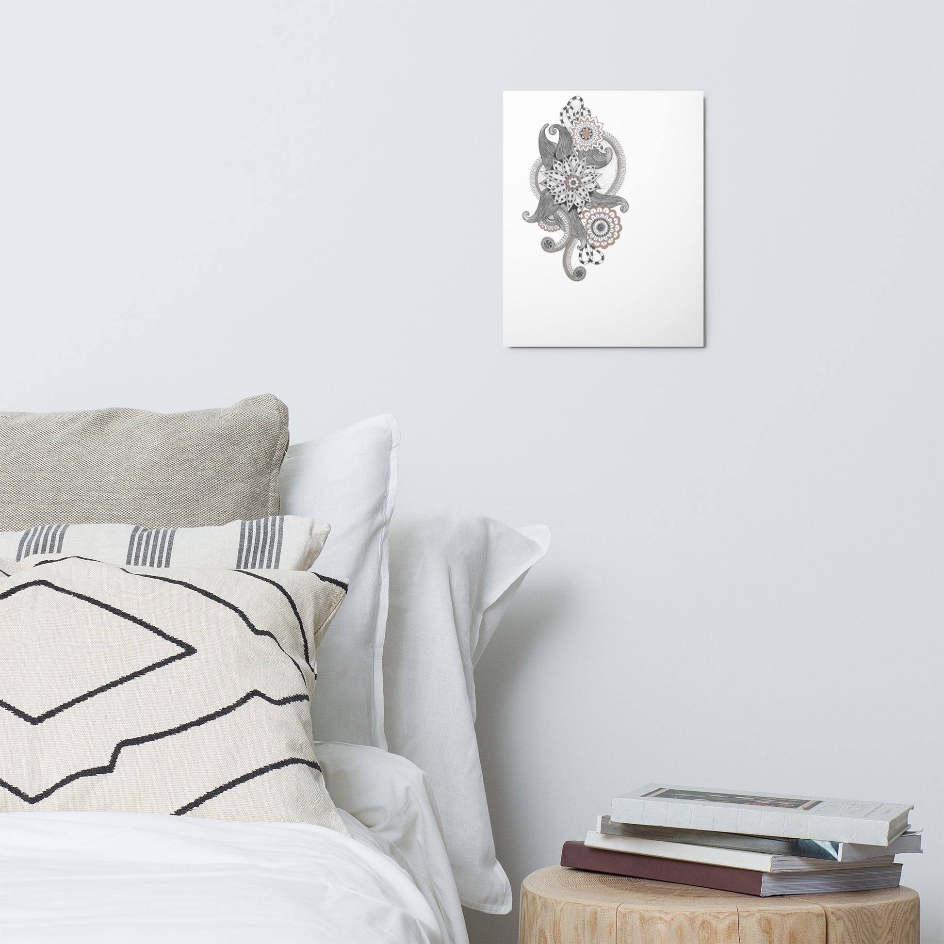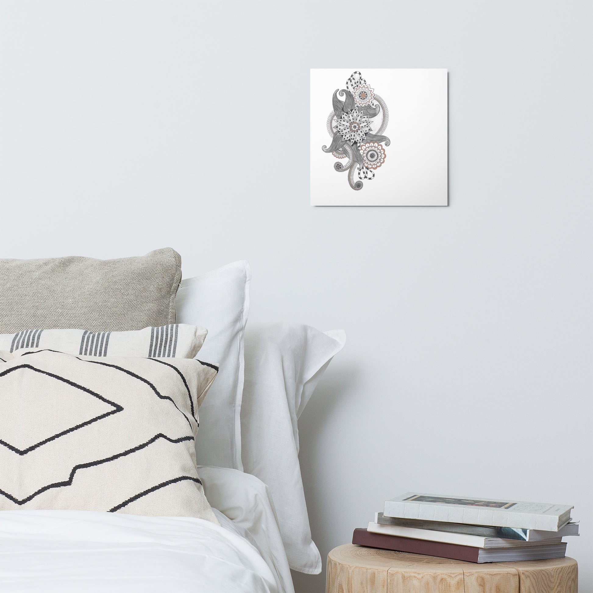 This metal print is a dimensional and high-quality piece of art that stands the test of time while remaining easy to clean and care for. The artwork looks luminescent against the wall and the metal base means it’ll last a long time.