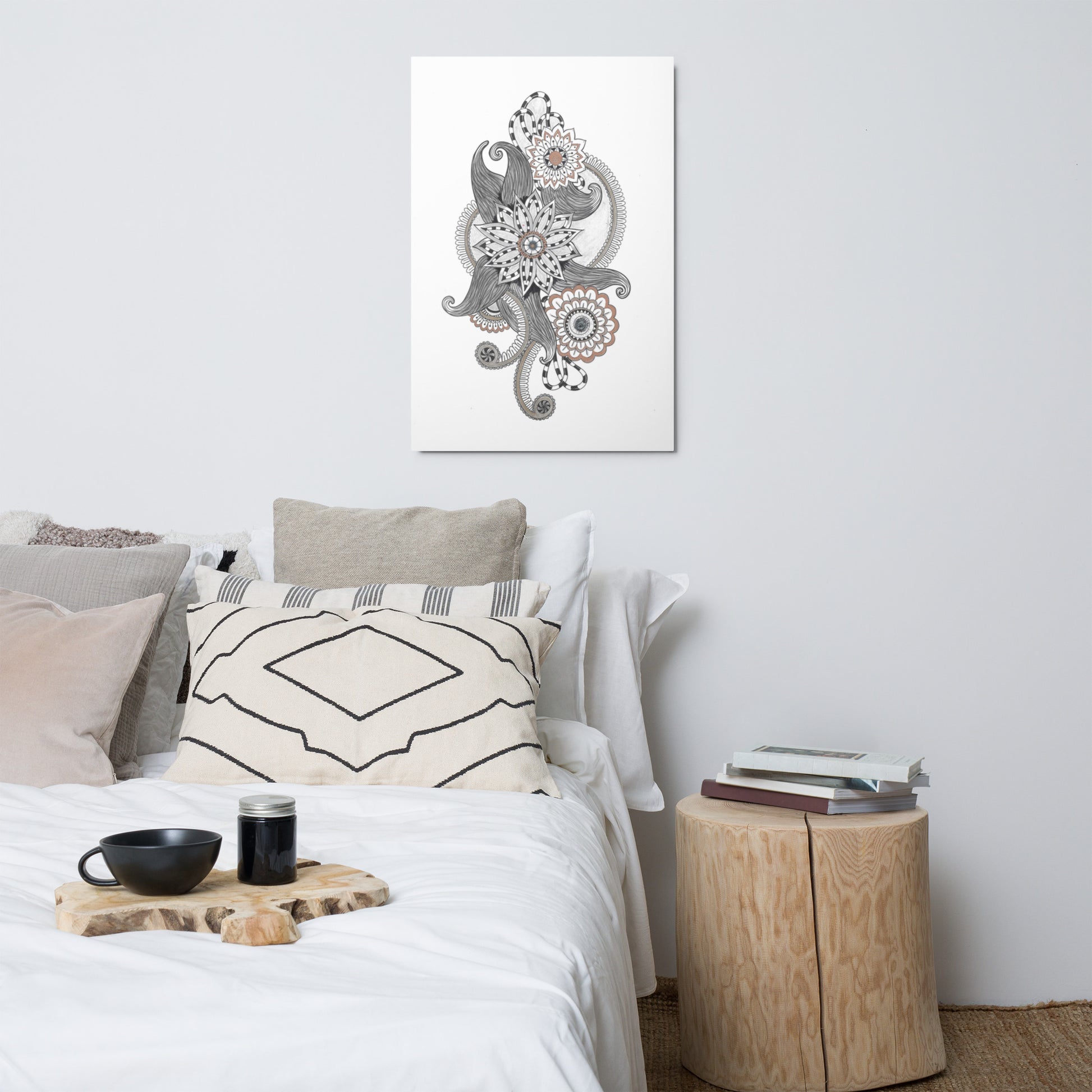 BlkGryWht Floral Deco Metal prints